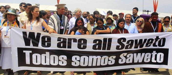Bajo el lema "Todos somos Saweto", las viudas de los líderes asháninkas asesinados por la defensa de sus bosques en Saweto, región Ucayali, recibieron la solidaridad de instituciones y organizaciones internacionales que participan en la COP 20.